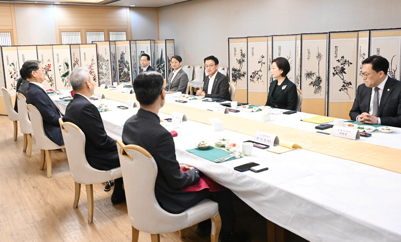 최상목 대통령 권한대행 부총리 겸 기획재정부 장관이 3일 정부서울청사에서 열린 수출기업 오찬간담회를 주재하고 있다. 2025.2.3 [기획재정부 제공]