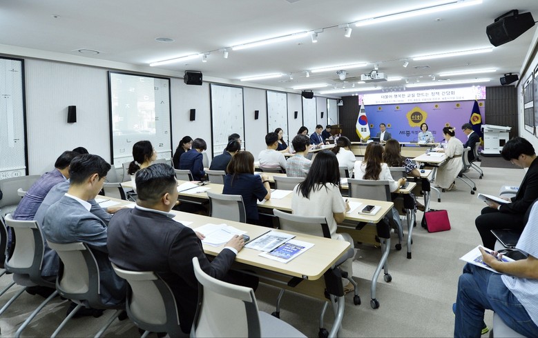 [세종 세계타임즈=이채봉 기자] 세종특별자치시의회 김효숙 의원(나성동)은 17일 오전 10시 세종시의회 1층 대회의실에서 강준현 세종을 국회의원과 함께 학교 폭력과 교권 보호를 위한 ‘더불어 행복한 교실 만드는 정책 간담회’를 열었다.
