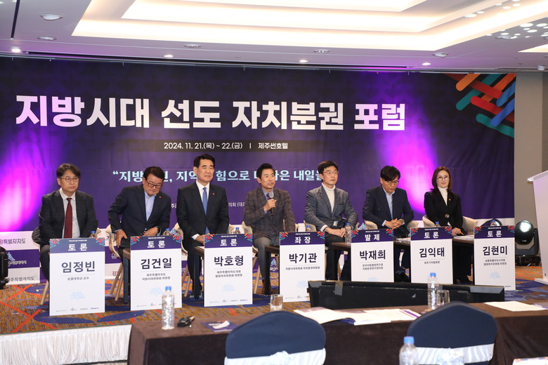 박기관 지방시대위원회 자치분권위원장이 좌장을 맡았고, 박재희 한국지방행정연구원 지방분권연구센터장이 발제, 김건일 제주특별자치도 지방시대위원회 위원장, 박호형 제주특별자치도의회 행정자치위원회 위원장, 김현미 세종특별자치시 행정복지위원회 위원장, 임정빈 성결대학교 교수, 김익태 제주기자협회장이 토론자로 참석했다.