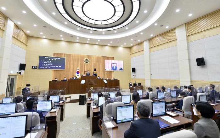 1차 본회의에서는 채평석‧이순열‧임채성‧안찬영 의원의 5분 자유발언에 이어 ‘2022년도 예산안 및 2021년도 제3회 추경예산안 제출에 따른 시정연설과 제안설명’ 등 5건을 처리했다.