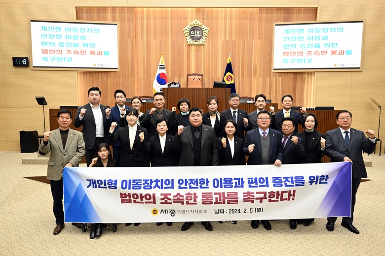 한편, 세종시의회는 ‘개인형 이동장치의 안전한 이용 및 편의 증진에 관한 법률 제정 촉구 결의안’을 국회의장과 국무총리, 국토교통부장관, 행정안전부장관, 산업통상자원부장관, 경찰청 등에 이송할 예정이다.