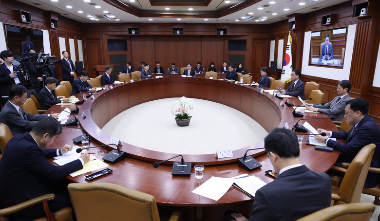 최상목 대통령 권한대행 부총리 겸 기획재정부 장관이 5일 정부서울청사에서 '국정현안관계장관회의 겸 경제관계장관회의 겸 산업경쟁력강화관계장관회의'를 하고 있다. 2025.2.5 [대통령실통신사진기자단]