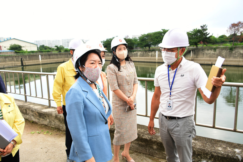 이어서, 저지대 침수피해를 막기 위해 설치한 송정배수펌프장을 방문해 집중호우 등으로 급격히 늘어난 빗물을 강제로 배수시키는 시설 관리상황을 점검했다.