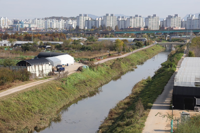 국토교통부는 5일 수도권 그린벨트 일부를 해제하고 신규 택지를 지정하는 '11·5 주택 공급 대책'을 발표했다. 이번 공급 대책에는 경기도 고양시 대곡역 일대가 포함됐으며, 대곡 역세권에 9천400가구의 아파트 단지가 들어설 예정이다. 사진은 5일 그린벨트가 해제된 경기도 고양시 대장동 대곡역 일대의 모습. 2024.11.5