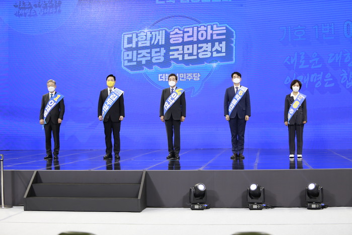 이닐 합동연설회에서는 김두관 박용진 이낙연 추미애 이재명 후보 순으로 정견 발표를 했다.