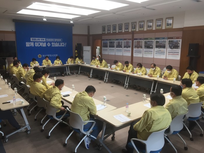 [부산=세계타임즈 장경환 기자] 부산광역시의회 더불어민주당 의원들은 지난 23일 오후 3시 긴급 의원총회를 개최했다. 총회에는 더불어민주당 소속 시의원과 시당 사무처장 등 관계자가 참석한 가운데, 오거돈 시장의 사퇴에 따른 비상대책을 논의하였다.