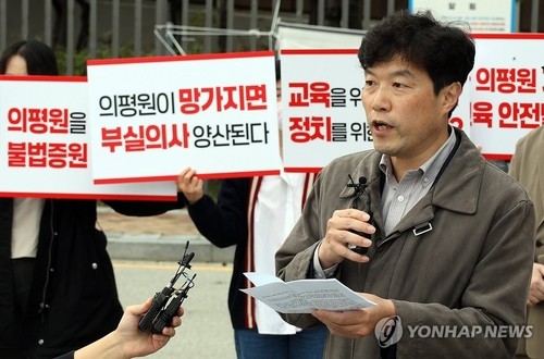 [세계타임즈 = 박서원 기자] 의대 교수들이 의학 교육 평가·인증에 관한 교육부의 시행령 개정을 두고 어용 한국의학교육평가원을 만들려는 시도라고 규탄하며 시행령 개정을 철회할 것을 촉구했다.최창민 전국의과대학교수 비상대책위원회 위원장은 21일 세종시 교육부 청사 앞에서 항의 집회를 열고 이주호 교육부 장관은 의학 교육의 마지막 보루인 의평원을 무력화하기 위한 의평원 시행령 개정안을 추진하고 있다며 당장 철회해야 한다고 주장했다.교육부는 지난달 26일 고등교육기관의 평가·인증 등에 관한 규정 일부 개정령안을 입법예고했다.교육부는 개정 이유로 인정기관의 공백으로 대학과 학생들에게 피해가 발생하지 않도록 인정기관이 존재하지 않거나 평가인증이 불가능한 경우 기존 평가·인증 유효기간을 연장할 수 있는 근거를 마련하고자 한다고 밝혔다.개정안은 기존 인정기관의 평가·인증이 불가능한 경우 기존 평가·인증의 유효기간을 연장할 수 있고, 대규모 재난이 발생해 의대 등의 학사 운영이 정상적으로 이뤄지지 못한 경우에 의평원이 불인증 하기 전 의대에 1년 이상의 보완 기간을 부여하도록 했다.이런 내용 때문에 의사 단체들은 규정 개정을 통해 교육부가 의평원의 인증을 무력화하려는 것이라고 비판해왔다.채희복 충북대 의과대학 교수 비대위원장은 이날 개정령안을 두고 의평원을 해체하기 위한 준비라며 의평원에 조건부 인증을 하고, 그 지정을 취소한 뒤 어용 의평원을 내세우기 위한 빌드업준비이라고 지적했다.채 교수는 조규홍 보건복지부 장관이 월권으로 혼자서 2천명 입학 정원 증원을 결정하고 공표할 때 주무 부처인 교육부 장관은 아무런 말도 못 하고 조 장관의 차관인 것처럼 전국 의대 교수와 학생들에게 증원은 좋은 정책이라고 홍보하러 다녔다고 이주호 장관을 비난했다.이주호 장관은 의대 교육 역량을 먼저 살피고 수용 가능한 인원을 산정해 증원해야 하는데도 자신보다 국무위원 서열이 낮은 복지부 장관이 시키는 대로 증원했다고 했다.의대 교수들은 이날도 의대생들의 휴학을 승인해야 한다고 정부에 요구했다.최 위원장은 이주호 장관은 학생들의 정당한 휴학을 승인해 주지 않고 있는데, 이는 학생들의 기본 권리와 대학의 자율성을 침해하는 것이라며 이미 올해 교육은 불가능한 상황으로 휴학은 당장 승인돼야 한다고 강조했다.지금은 한국 대학교육의 위기라며 법률이 정한 기본 사항조차 장관의 말 한마디로 달라진다면 한국 대학의 미래는 없다고 덧붙였다.현재 교육부는 10% 이상 증원된 의대를 대상으로 의평원이 2025학년도부터 6년간 매년 주요 변화 평가를 시행하기로 하는 등 인증을 강화한다는 방침을 사후심의 중이다.교육부는 효율적이고 전문적인 심의를 위해 9월부터 1개월가량 소위원회 심사를 했다며 10월 중순에 소위원회 심사 의견서를 의평원에 송부하고, 10월 하순까지 의평원에 이행 계획 제출을 요청한 상황이라고 설명했다.소위원회 심사 의견, 의평원 이행 계획을 토대로 10월 말에 인정기관 심의위원회에서 심의 결과를 확정할 예정이라고 덧붙였다.이번 규정 개정안에 인정기관 공백 때 기존 평가·인증 유효기간을 연장한다는 내용이 포함된 것을 두고 의료계에서는 교육부가 의평원을 인정기관으로 재지정하지 않는 상황을 염두에 둔 것 아니냐는 반발도 나온다.교육부는 현재 의평원의 인정기관 재지정 취소는 검토하고 있지 않다고 선을 그었다.
