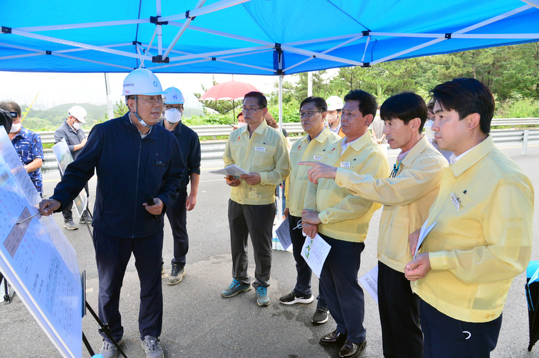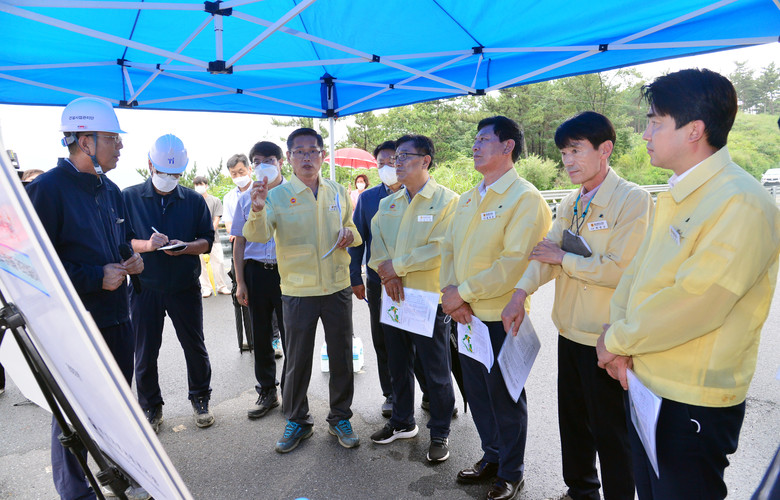이날 산업건설위원회 위원들은(위원장 문석주, 부위원장 김종훈, 홍유준, 김수종, 백현조) 농소~외동 국도건설 공사 현장을 방문하여 사업관계자로부터 공사 개요 및 추진상황을 보고 받은 후 인접 도로와의 연결성 등 주변 여건을 살펴봤다.