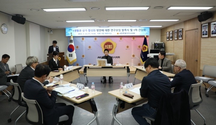 [세종 세계타임즈=이채봉 기자] 세종특별자치시의회(의장 상병헌)는 22일 오후 의회 청사 대회의실에서 ‘1생활권 상가 활성화 방안에 대한 연구모임(대표의원 임채성)’을 발족하고 첫 번째 간담회를 개최했다.