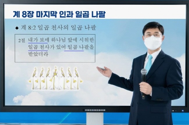 특히 그는 “요한계시록 8장을 많은 분들이 글자 그대로, 또 문자적으로 이해하시다 보니까 피 섞인 우박과 불이 나서 땅에 쏟아지므로 땅의 1/3이 타더라, 횃불같이 타는 큰 별이 땅에 떨어지더라 하니까, ‘핵폭탄이다?, 소행성 충돌이다?, 지구 멸망?’이라고 오해하는 분들이 상당히 많다. 이 말씀 들으시면서 과연 그러한지 비교해 보면 정말 큰 은혜가 될 것”이라고 강조했다.