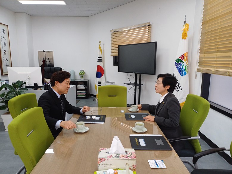 [세종 세계타임즈=이채봉 기자] 세종특별자치시의회 ‘이순열’ 의장이 1월 31일(수) 여주시 세종문화관광재단을 방문해 ‘이순열’ 이사장과 인사를 나누고 1시간 30분 환담 시간을 가졌다.