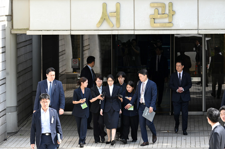 윤석열 전 대통령 부인 김건희가 12일 구속 전 피의자 심문(영장실질심사)을 마친 뒤 서울 서초구 서울중앙지법을 나서고 있다. 2025.8.12 [사진공동취재단]