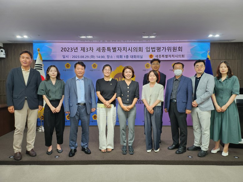 [세종 세계타임즈=이채봉 기자] 세종특별자치시의회(의장 이순열, 이하 세종시의회)는 29일 입법평가위원회 제3차 회의를 열고 ‘2023년 조례 입법평가 연구용역 최종보고회’를 개최했다.