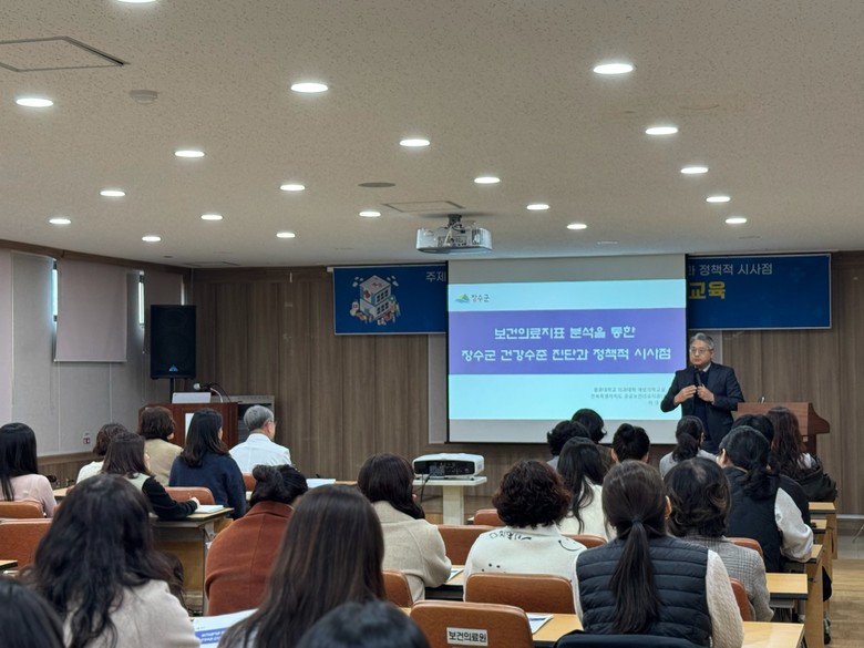 이번 교육은 원광대학교 의과대학 이영훈 교수를 초빙해 진행됐으며 지역 보건의료 현장에서 활용 가능한 보건·건강통계 지표의 개념과 해석 방법, 지표 분석을 통한 장수군민의 건강수준 진단, 이를 정책에 연계하는 과정 등을 중심으로 구성됐다.