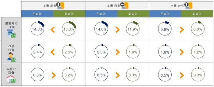 고소득 맞벌이, 외벌이보다 보험계약대출 및 신용대출 경험 多