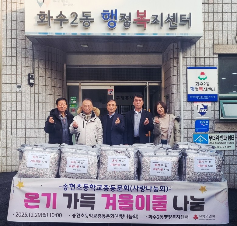 [동구 세계타임즈=심하린 기자] 인천 동구 송현초등학교총동문회 사랑나눔회는 지난달 29일 화수2동 지역사회보장협의체(민간위원장 강상원)에 겨울 이불을 기탁했다고 밝혔다.