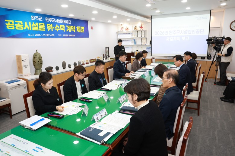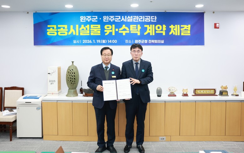 이날 체결식에는 유희태 완주군수와 소관 부서장, 이희수 완주군시설관리공단 이사장과 공단 팀장 등 10여 명이 참석했다. 행사에서는 공단의 2025년 운영 성과와 올해 운영 계획을 공유하고, 위·수탁 계약서를 교환했다.