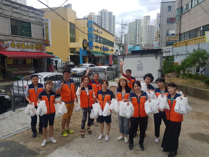 이날 태풍예보 속에서도 진행된 통닭봉사에는 신상일 회장, 유희자 단장을 비롯해서 회원20명이 참석을 해서 대전시농아인협회(회장 박종희)에 50마리, 보문장애인자립생활센터에 70마리를 전달을 하였다.