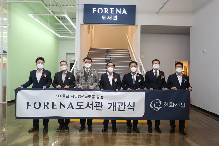 [세계타임즈 이진화 기자]한화건설(대표이사 최광호)이 29일 인천 미추홀구에 위치한 ‘시민협력플랫폼 공감’에서 포레나 도서관 100호점을 개관했다.