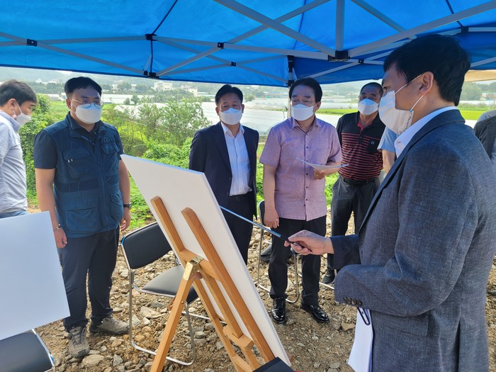 동이면 적하리 1301번지 일원은 매화~동이 2공구 지방도 확장공사가 진행중인 곳으로 72억원을 들여 ‘18년부터 ’22년까지 추진중이다.