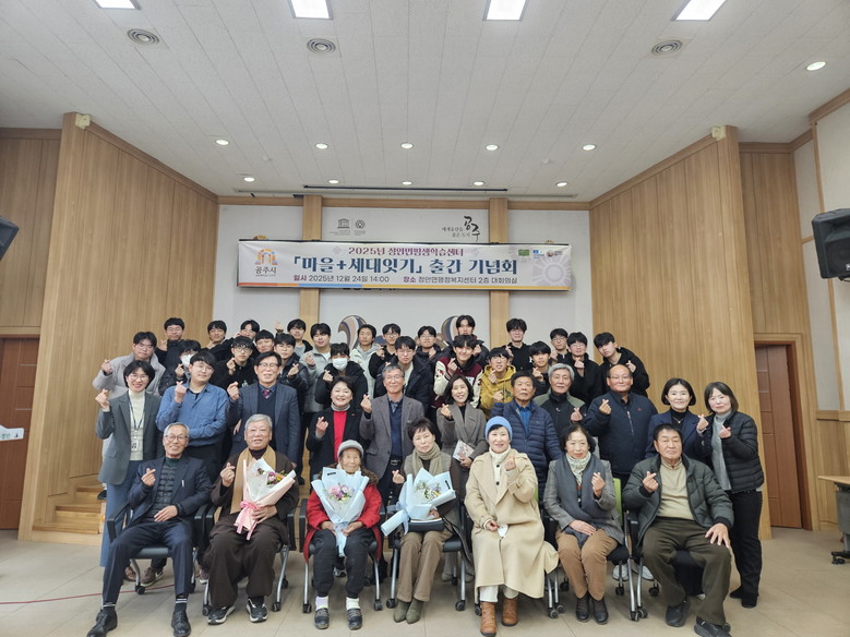 ‘마을+세대잇기’는 정안면 어르신 6명의 생애 구술을 바탕으로 한일고등학교 학생 24명이 인터뷰와 기록, 원고 정리 과정에 참여해 한 권의 책으로 완성한 세대 공감 프로젝트다. 어르신의 삶을 ‘마을의 기억’으로 남기고, 학생들이 기록자로 성장하며 서로를 이해하는 과정에 세대 간 배움과 연대의 의미가 담겼다.