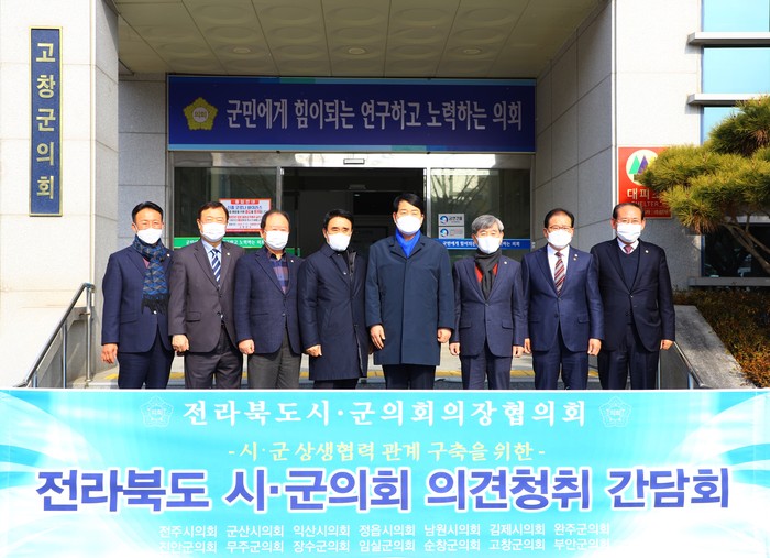 이번 간담회는 강동화 협의회장, 조상중 정읍시의회 의장, 양희재 남원시의회 의장, 김광수 진안군의회 의장, 박찬주 무주군의회 의장, 신용균 순창군의회 의장, 문찬기 부안군의회 의장이 함께 했다.
