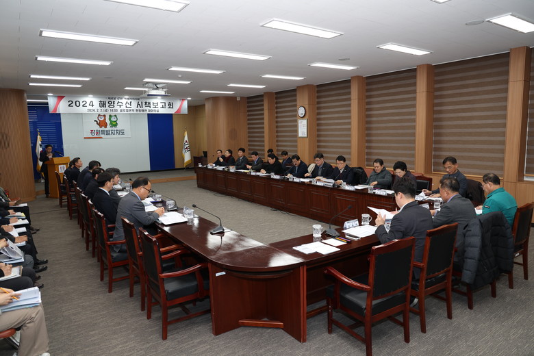 [강원도 세계타임즈=김민석 기자] 강원특별자치도의회 권혁열 의장을 비롯한 동해안권 시‧군의원 15명은 강원특별자치도의 2024 해양‧수산분야 주요 정책과제와 주요시책을 점검하고 주요 현안사항 개선방안을 모색하는 ‘2024 해양수산시책 보고회(24.2.2.(금), 제2청사 환동해관)’에 참석하였다.