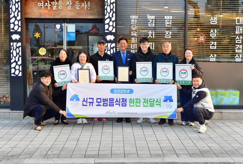 군은 올해 △남해회센터(장성읍) △소소한집밥(장성읍) △온다(장성읍) △엘로우한우식육식당(진원면) △친구야(장성읍) △탐앤틈(삼계면) 6곳을 신규 ‘모범음식점’으로 지정했다. 기존 ‘모범음식점’ 27곳도 재심사를 통과해, 장성지역에는 총 33개 업소가 등록됐다.