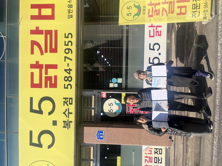 협약을 통해 5·5닭갈비 측은 이달부터 복수동 취약계층 20가구를 대상으로 무료 음식을 제공한다.