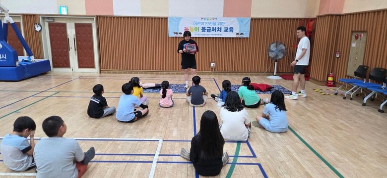 교육은 서재문화체육센터 다목적 체육관에서 진행되며, 센터 어린이 회원 약 20명이 참여해 △심폐소생술(CPR) △자동심장충격기(AED) 사용법 △기도폐쇄 대처법(하임리히법) 등 핵심 응급처치 기술을 익히게 된다.