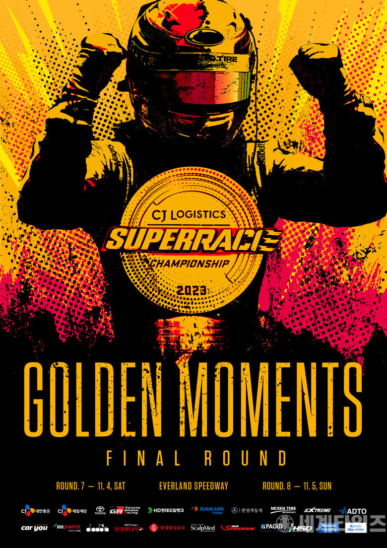 [세계타임즈=방춘재 기자] 슈퍼레이스 최종전 ‘골든 모먼트(GOLDEN MOMENTS)’가 열흘 앞으로 다가왔다. 2023 CJ대한통운 슈퍼레이스 챔피언십 최종전(7, 8라운드)이 다음 달 4일과 5일 경기도 용인에 위치한 에버랜드 스피드웨이에서 펼쳐진다. 이날 시즌 챔피언의 탄생과 함께 6개월여 간의 대장정이 마무리된다.