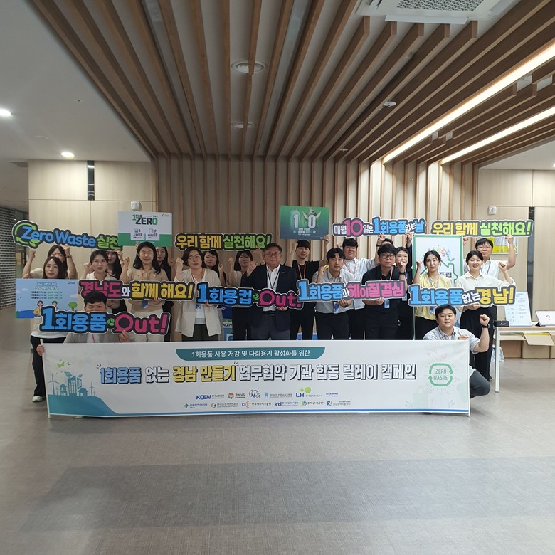 - 매월 릴레이 캠페인 통해 친환경 문화 확산 주도 [세계타임즈=경남 최성룡 기자] 경상남도(도지사 박완수)와 ‘1회용품 없는 경남만들기’ 10개 협약기관* 은 24일 오전 11시 20분부터 한국남동발전 별관 4층에서 1회용품 사용 줄이기 합동 캠페인을 진행했다고 밝혔다.