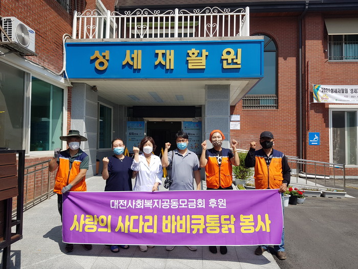 [대전=세계타임즈 이채봉 기자] 코로나19로 힘든 상황에서도 비대면 봉사로 다양한 봉사를 펼치고 있는 SNS 9천명 봉사단체 사단법인 사랑의 사다리 밴드(리더 이정제)는 지난 19일 오후3시, 유성구 용계동에 위치한 중증장애인거주시설 성세재활원에서 바비큐 통닭 50마리 봉사로 우리 사회의 따뜻한 사랑을 전달 하였다.