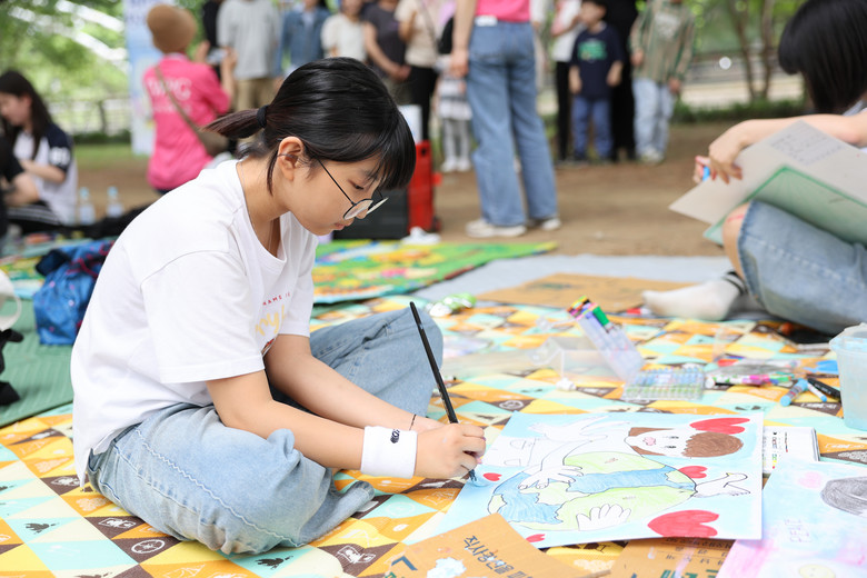 | ▲ 국립서울현충원에서 열린 제7회 평화사랑 그림그리기 국제대회 예선 참가자가 그림을 그리고 있다. (사진제공 = ㈔세계여성평화그룹(IWPG) 글로벌 8국) |