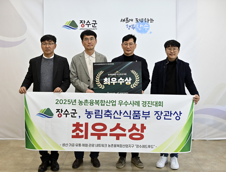 이번 수상으로 장수군은 2026년도 농촌공간정비사업(농촌특화지구형) 및 농촌크리에이투어 지원사업 공모 시 가점을 확보하게 되어 군이 구축해 온 레드푸드 기반의 융복합 전략이 향후 지역 농업과 먹거리산업, 관광산업 확충 및 지역경제 활성화에 큰 탄력을 받을 것으로 기대된다.