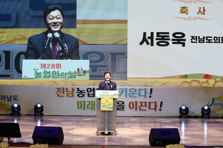 [전남 세계타임즈=우덕현 기자] 전라남도의회 서동욱 의장은 11월 10일 장성문화예술회관 대강당에서 열린 제28회 ‘농업인의 날’ 기념행사에 참석해 “농업 농촌의 경쟁력을 높이고, 농가의 안정적인 소득 창출에 관심과 지원을 아끼지 않겠다”고 밝혔다.