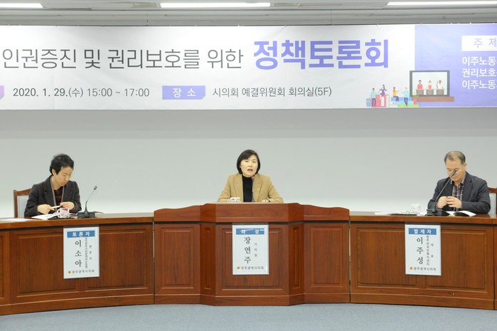 [광주=세계타임즈 손권일 기자] 광주광역시의회(의장 김동찬)는 1월29일 시의회 5층 예산결산특별위원회의실에서 장연주 의원을 좌장으로 이주노동자 인권증진 및 권리보호를 위한 '광주광역시 이주노동자 지원 정책방향'이라는 주제로 토론회를 개최했다