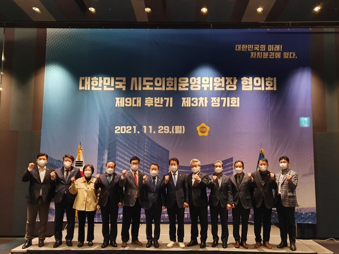[대구=세계타임즈 한성국 기자] 대구광역시의회 이시복 운영위원장은 11월 29일(월) 오후 4시 30분 수원시 라마다호텔에서 열린 제9대 후반기 대한민국 시도의회 운영위원장 협의회 제3차 정기회에 참석해 상정된 안건을 처리하고, 협의회 현안을 논의했다.