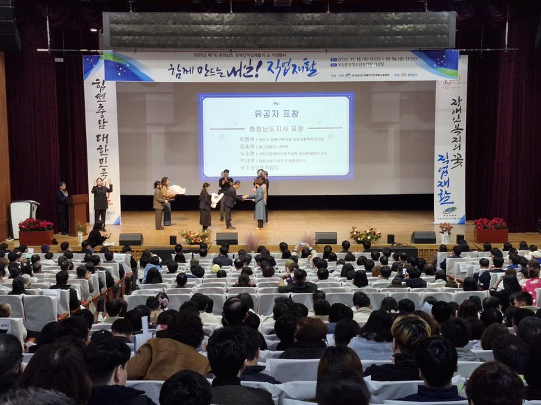 매년 10월 30일로 지정한 ‘장애인직업재활의 날’을 맞아 한국장애인직업재활시설협회 충남협회가 주최·주관한 이날 행사는 성만제 도 보건복지국장, 직업재활시설협회, 장애인고용공단, 직업재활시설 이용자·종사자 등 650여 명이 참석해 자리를 빛냈다.