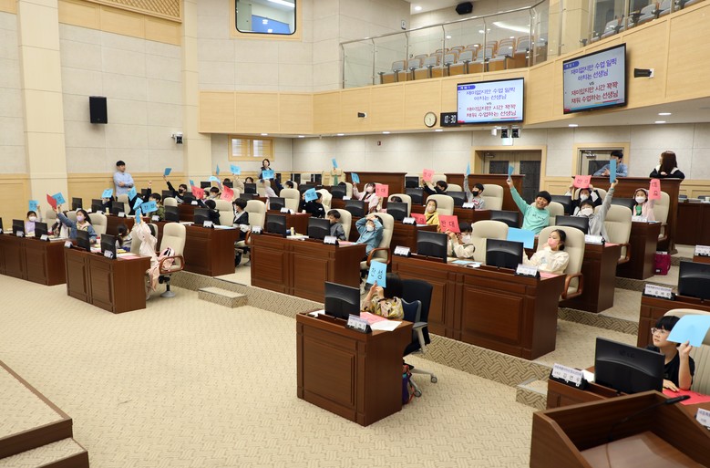 이후 학생들은 2분 발언 및 표결체험, 시정 및 교육행정 질문 등을 체험하며 본회장에서 이루어지는 시의원들의 의정활동에 대해 체험했다