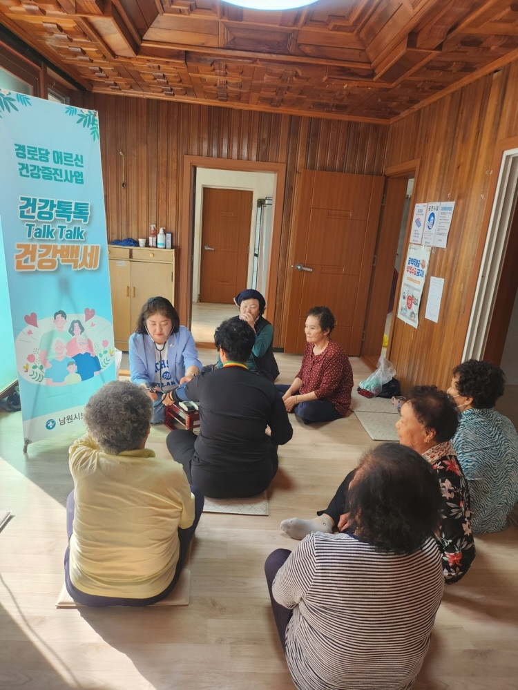 올해 사업은 남원시 409개소 경로당을 방문하여, 어르신들의 질병 예방과 건강 증진을 위한 포괄적 건강관리 서비스를 제공하여 삶의 질 향상을 목표로 실시한다.