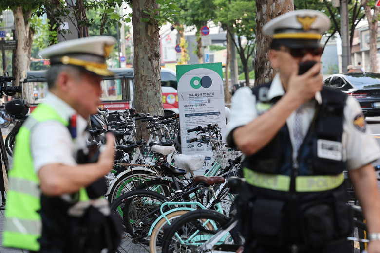 '따릉이 폭주족' 관련 단속하는 경찰들