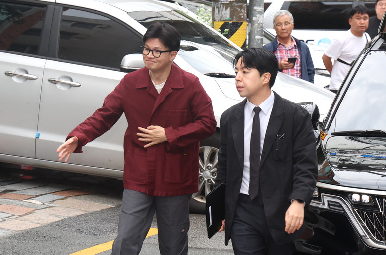 한동훈 국민의힘 대표가 15일 오후 부산 금정구 대한노인회 부산 금정구지회를 방문하기 위해 차에서 내리고 있다. 2024.10.15