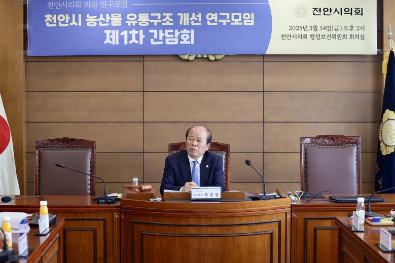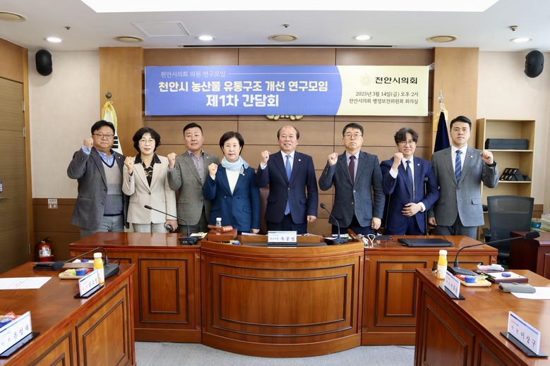 [천안시 세계타임즈=이현진 기자] 천안시의회(의장 김행금)는 의원 연구모임인 <천안시 농산물 유통구조 개선 연구모임>(대표의원 육종영)이 3월 14일 제1차 간담회를 열고 연구모임의 활동 방향 및 운영 계획을 확정했다고 밝혔다.