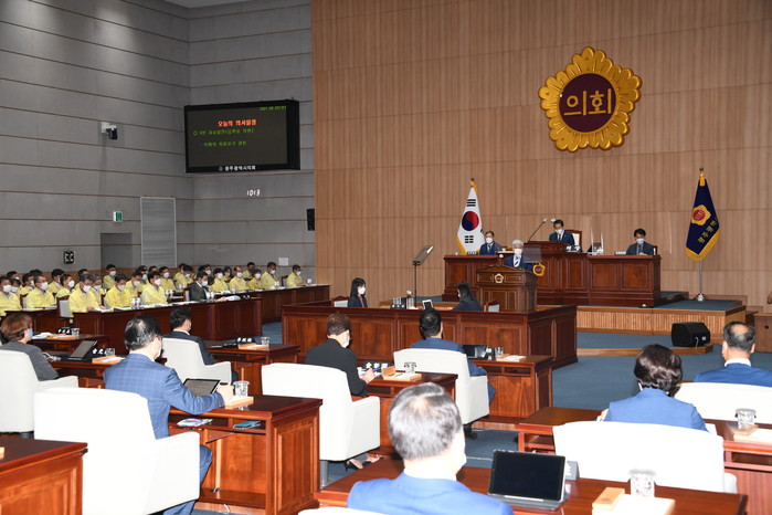 이 날 임시회에서는 2021년도 제2회 광주광역시 일반 및 특별회계 세입.세출 추가경정예산안 및 2021년도 제2회 광주광역시 교육비 특별회계 세입.세출 추가경정예산안에 대한 제안설명이 진행됐다.
