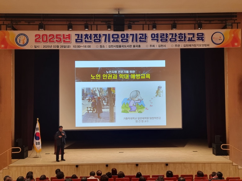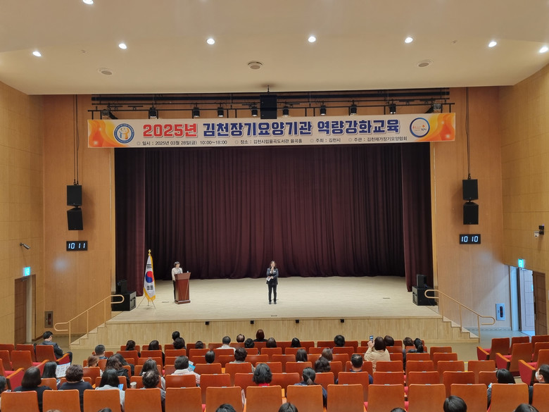 [김천시 세계타임즈=한윤석 기자] 김천시재가장기요양협회(회장 조현숙)는 지난 28일(금) 김천시립율곡도서관 율곡홀에서 관내 노인장기요양기관장 및 사회복지사 500여 명을 대상으로 노인학대 예방 교육 및 노인 인권 교육을 실시했다.