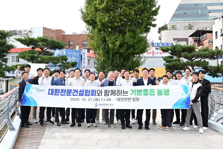 [중구 세계타임즈=이채봉 기자] 대전 중구(구청장 김제선)는 21일, 대전천변에서 대한전문건설협회 대전광역시회와 함께 `기분좋은 동행' 행사를 개최했다고 밝혔다.