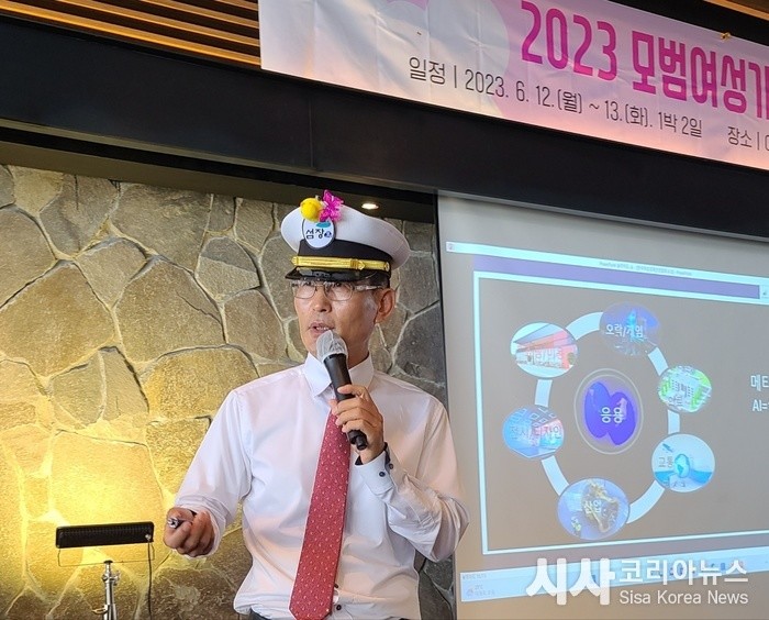 [[세계타임즈]최성룡기자= 글로벌AI메타버스개발원장 오용환은 지난 6월 12일 경남 남해 아난티 남해에서 진행된 모범여성기업인 시상식과 경남 여성CEO경영연수에서 "새로운 세계를 여는 Ai메타버스" 라는 주제로 특강했다.