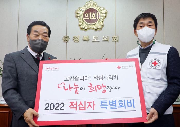 [충북=세계타임즈 이현진 기자] 충북도의회(의장 박문희)는 1월 25일 코로나19로 인한 어려움을 극복하고, 나눔문화 확산을 위해 대한적십자 충북지사에 적십자 특별회비를 전달했다.