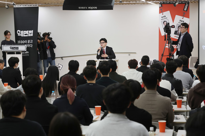 [세계타임즈 = 이채봉 기자] 국민의힘 한동훈 대표는 27일 청년 100명으로부터 질문을 받고 직접 대답하는 역면접을 진행했다.한 대표는 이날 서울 성동구의 한 공유오피스에서 당 싱크탱크인 여의도연구원과 정치 에이전시 뉴웨이즈가 공동 개최한 역면접X국민의힘, 2030이 묻고 정당이 답하다 행사에 참석했다.청년층 지지를 확보하기 위한 외연 확장 행보의 일환이다. 한 대표는 지난 7월 대표 수락 연설에서 국민의힘이 중도와 수도권, 청년으로 확장해 나가야 한다고 강조한 바 있다.한 대표는 이날 역면접에서 국민의힘은 청년 정책을 최우선에 두겠다며 일자리, 주거, 자산 형성, 복지에 집중하고 이 주제에서 청년의 삶을 우선순위에 두겠다고 답했다.인구 구조적, 정치공학적으로 우리가 청년 표를 얻지 못하면 전국단위 규모 선거에서 이길 수 없는 구조가 됐다면서 취업지원책, 공정 채용 보장책, 군 장병의 높은 급여 등 여러 가지 방향으로 나아갈 것이라고 설명했다.청년의 삶이 많이 힘든 것을 잘 알고 정치인으로서 죄송하고 개선해야 한다고 느낀다고 말했다.정치는 우선순위를 정하는 예술이다. 목소리 크고 정치에 참여하는 사람이 우선순위가 되기 때문에 청년도 그래야 한다며 청년들의 정치 참여 확대를 당부했다.한 대표는 국민의힘 인재상에 대해선 인적 관계나 공사 구분이 아닌 공적 마인드에서 하나의 기준을 공유하는 집단이 되는 것이 중요하다며 공적 마인드를 갖춰야 한다고 강조했다.한 대표는 청년들의 자유질문 시간에서도 지지를 호소했다.민주당은 전체주의적으로 하나의 목소리를 내지만, 우리는 개인의 자유와 성장을 굉장히 중요시 생각한다는 점에서 더 청년에게 맞는 정당이라며 청년에 대한 제 마음은 진심이지만 대단히 전략적이고 이기적이기도 하다. 청년 지지가 없으면 우리는 망한다고 말했다.자신의 공약이었던 지구당 부활과 관련해선 진종오 같은 스타를 모셔 오는 것도 필요하지만 직업 정치인으로 생활하면서 국회의원이 되고 대통령이 될 기회가 열려 있어야 한다며 지구당 부활이 이 방안 중 하나다. 그래야 자생적 정치가 가능하다고 설명했다.한 대표는 연금 개혁이 청년층에 부담을 준다는 한 참석자 질문에 아직 국회 단계에서 연금 개혁안이 결정되지 않았지만, 청년들이 목소리를 많이 내야 한다며 가장 불만을 많이 내는 쪽의 입장을 들어줄 수밖에 없다고 말했다.한 대표는 행사 후 기자들과 만나 국민의힘은 청년에게 진심이고, 청년의 힘이 되지 않으면 이길 수 없다며 청년의 마음을 얻어서 청년의 삶을 개선할 수 있는 정책을 앞으로 계속 추진하겠다고 밝혔다.국민의힘은 2025년 2월 청년들과 소통하고 청년층의 정치 입문 기회를 확대하기 위한 청년 페스타행사도 개최할 예정이다.